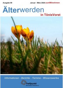 Sie heißt „Älterwerden in TönisVorst“ und kann kostenlos in vielen Einzelhandelsgeschäften, der Sparkasse und der Volksbank, sowie der Stadtverwaltung mitgenommen werden.